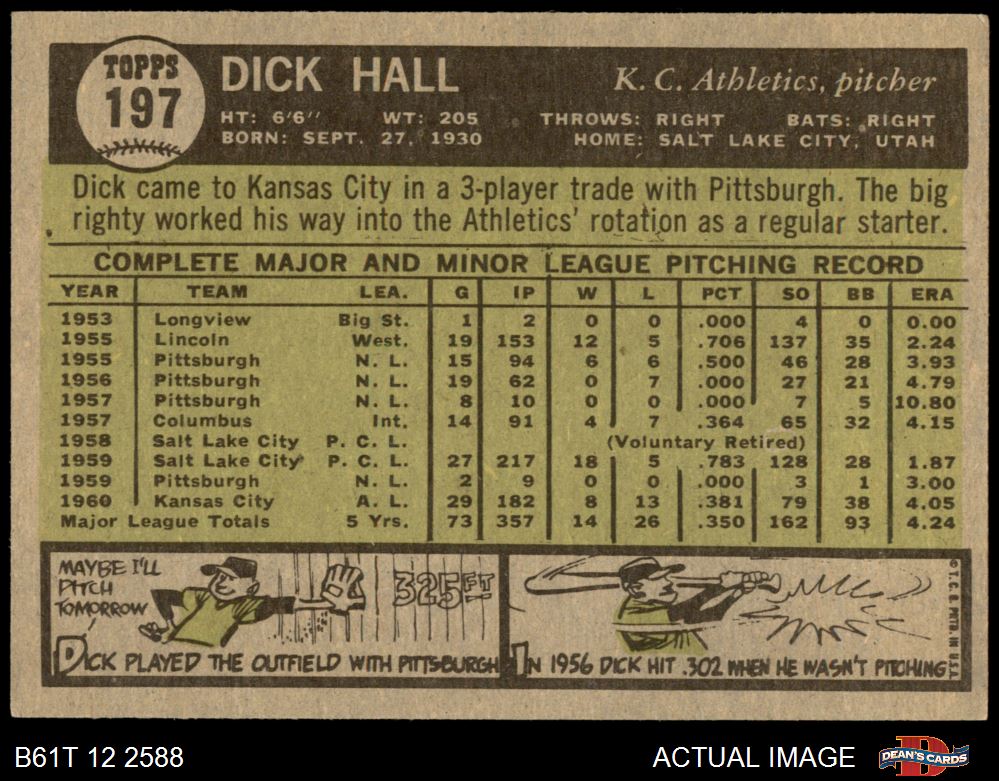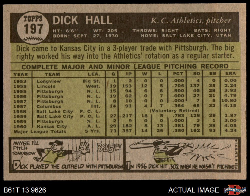 1961 Topps #197 Dick Hall 6 - EX/MT