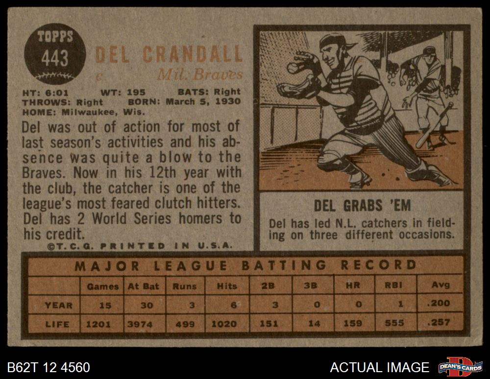 1962 Topps #443 Del Crandall 4 - VG/EX