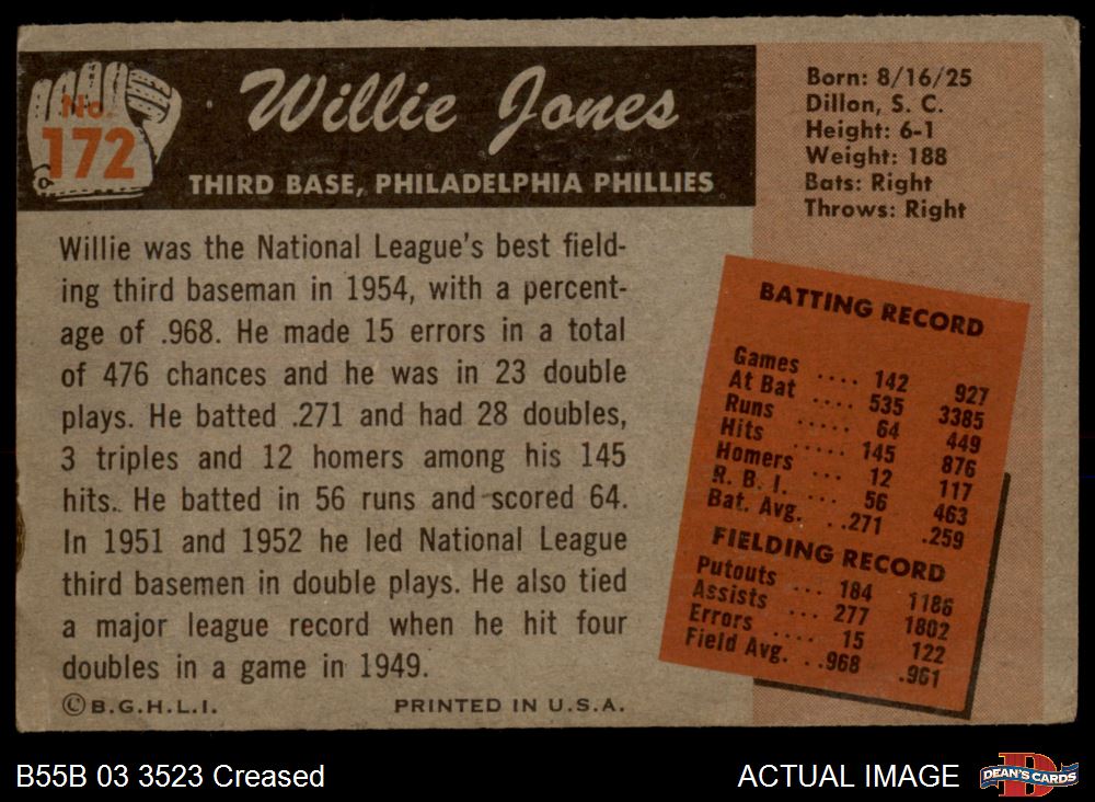 1955 Bowman #172 Willie Jones 3 - VG