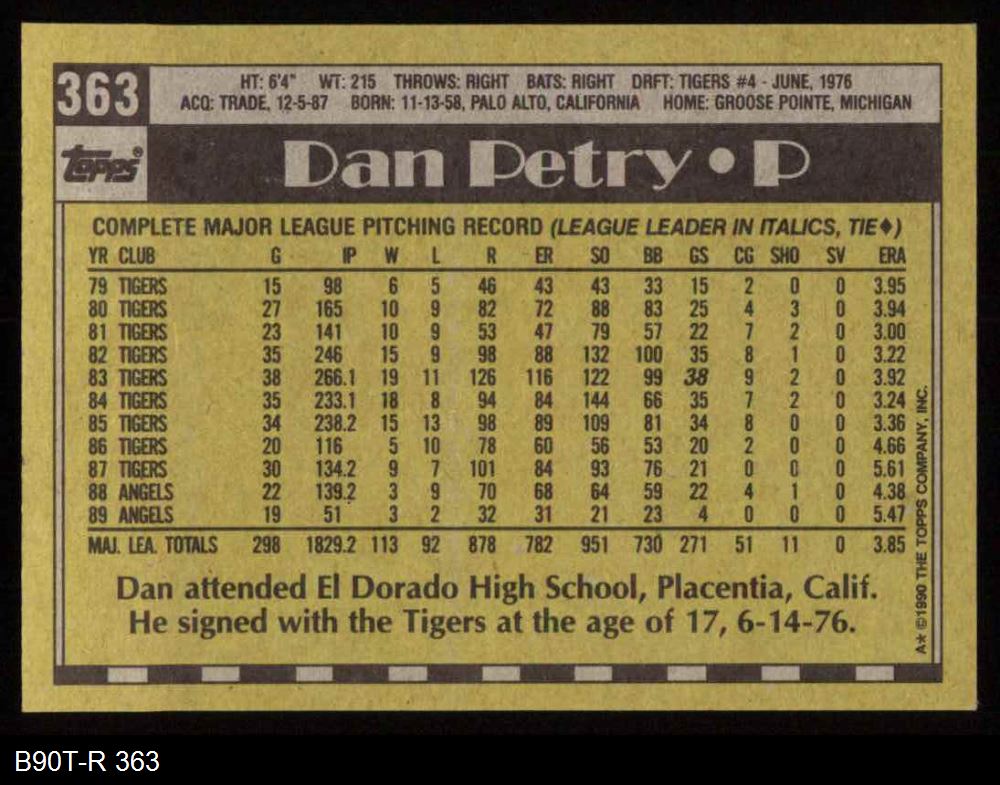 1990 Topps #363 Dan Petry