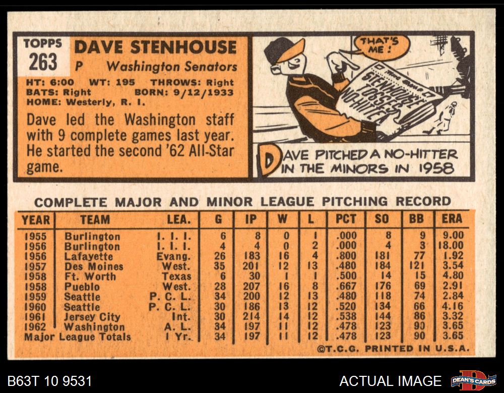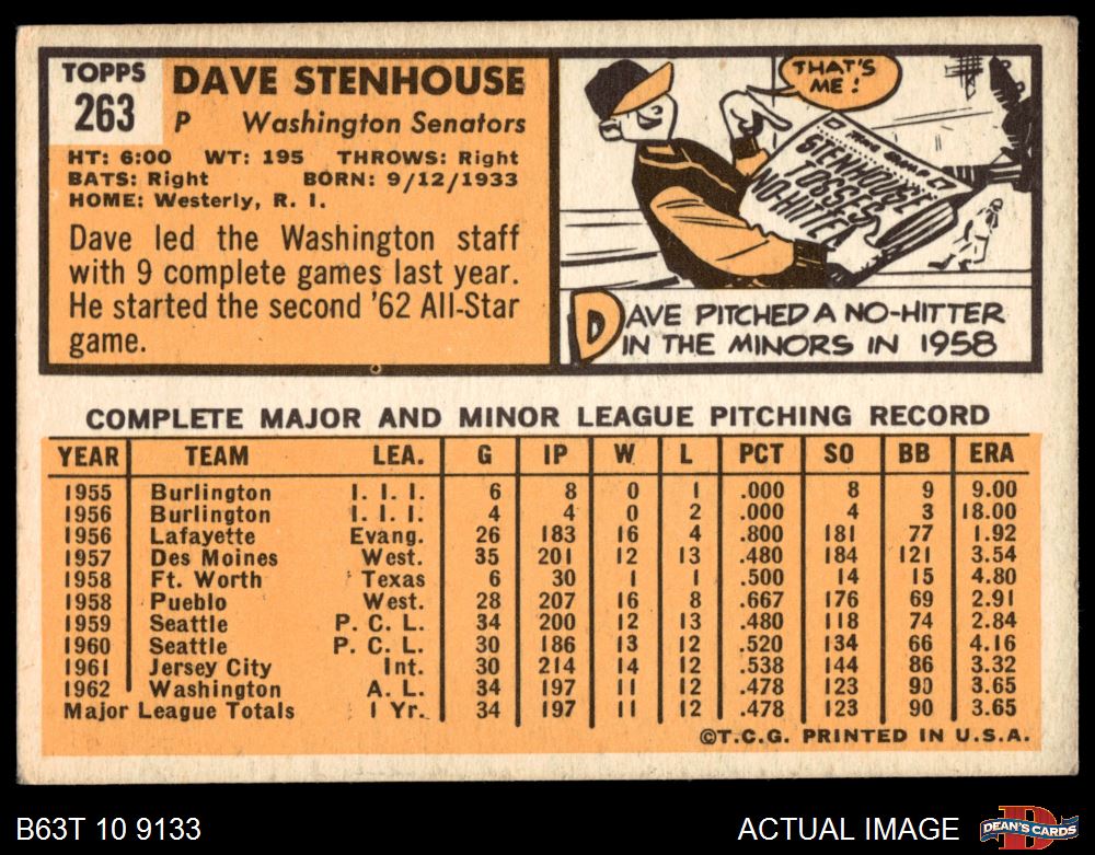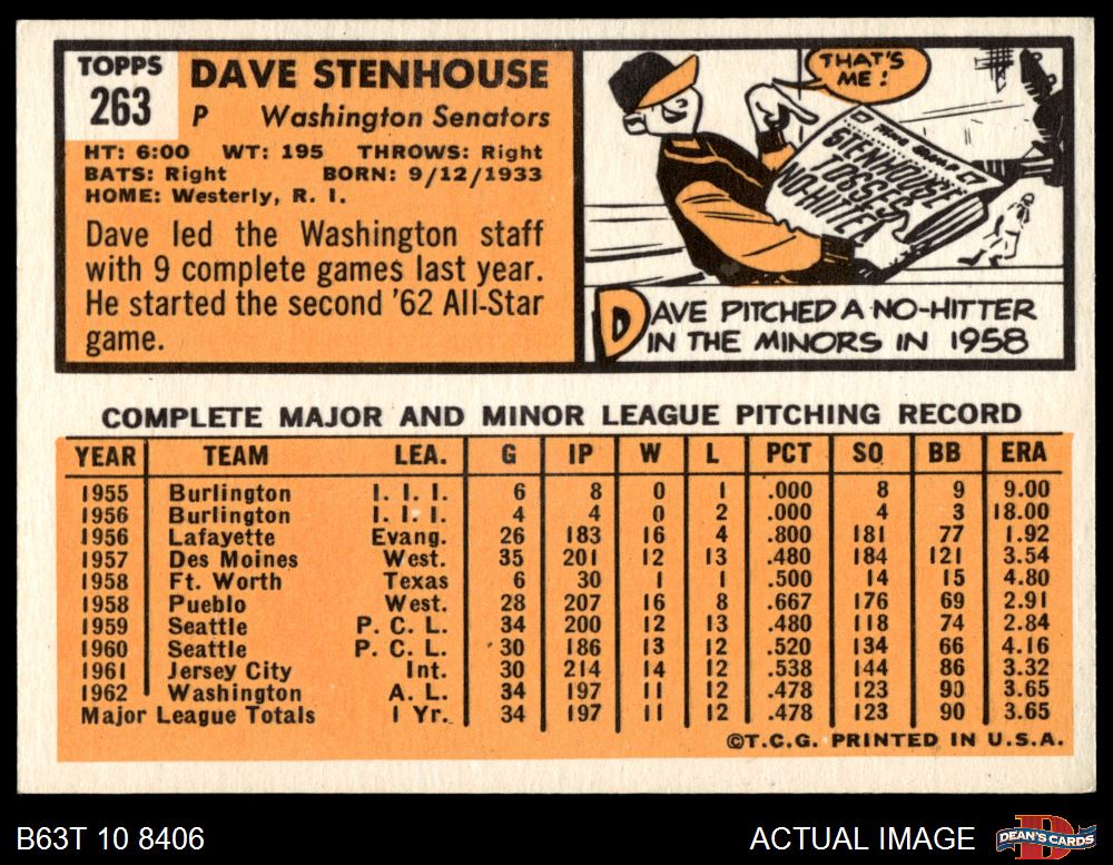 1963 Topps #263 Dave Stenhouse
