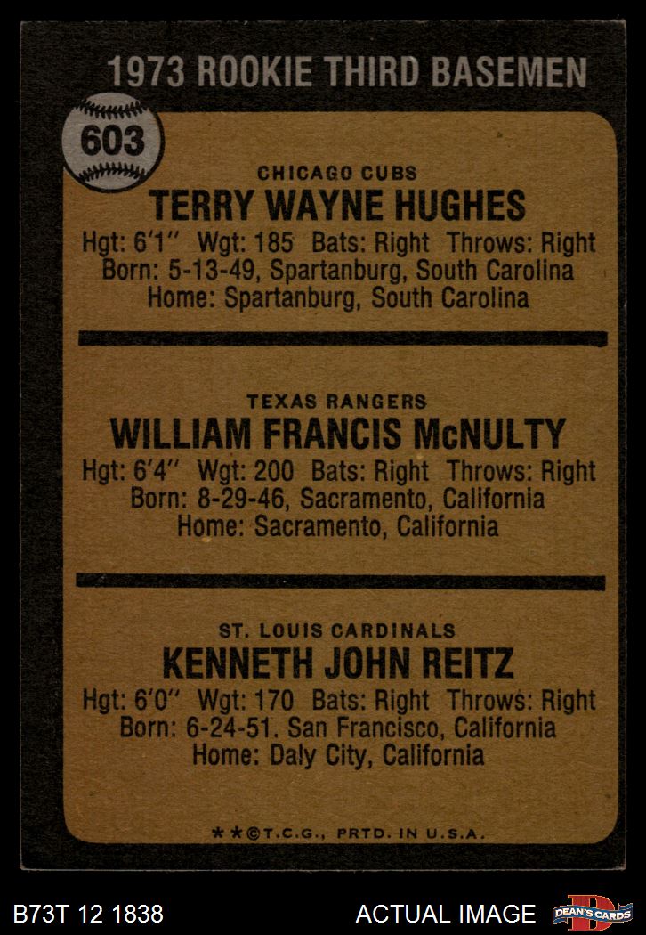 1973 Topps #603 - Ken Reitz / Terry Hughes / Bill McNulty Rookie Third Basemen 3 - VG