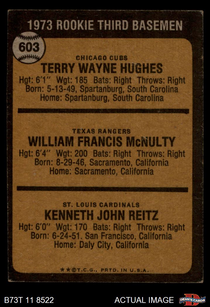 1973 Topps #603 - Ken Reitz / Terry Hughes / Bill McNulty Rookie Third Basemen 4 - VG/EX