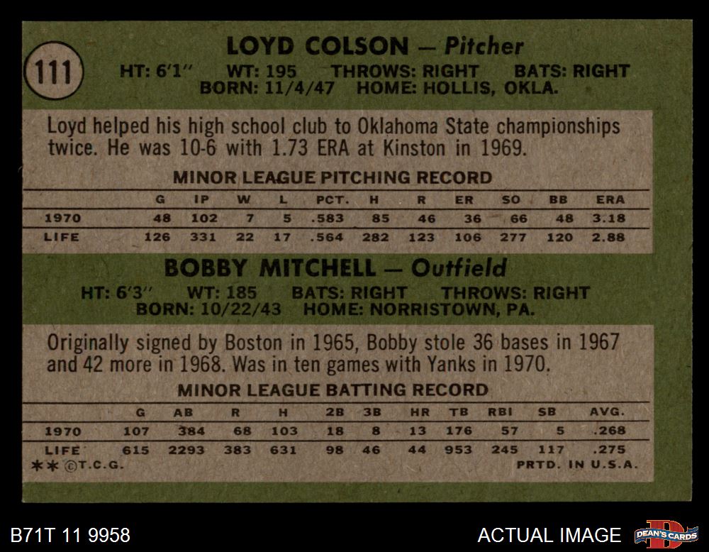 1971 Topps #111 - Loyd Colson / Bobby Mitchell Yankees Rookies 5 - EX