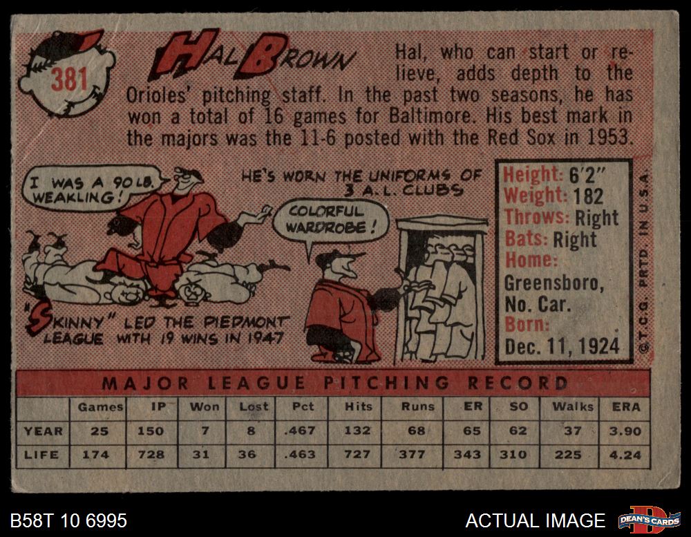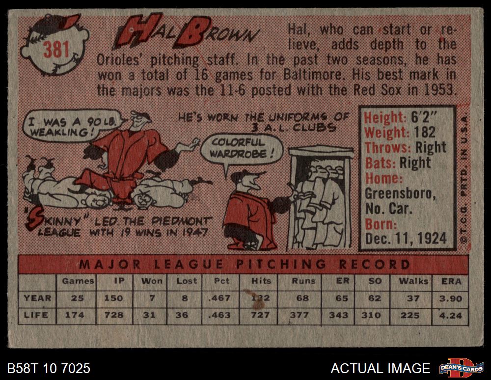 1958 Topps #381 Hal Brown 2 - GOOD