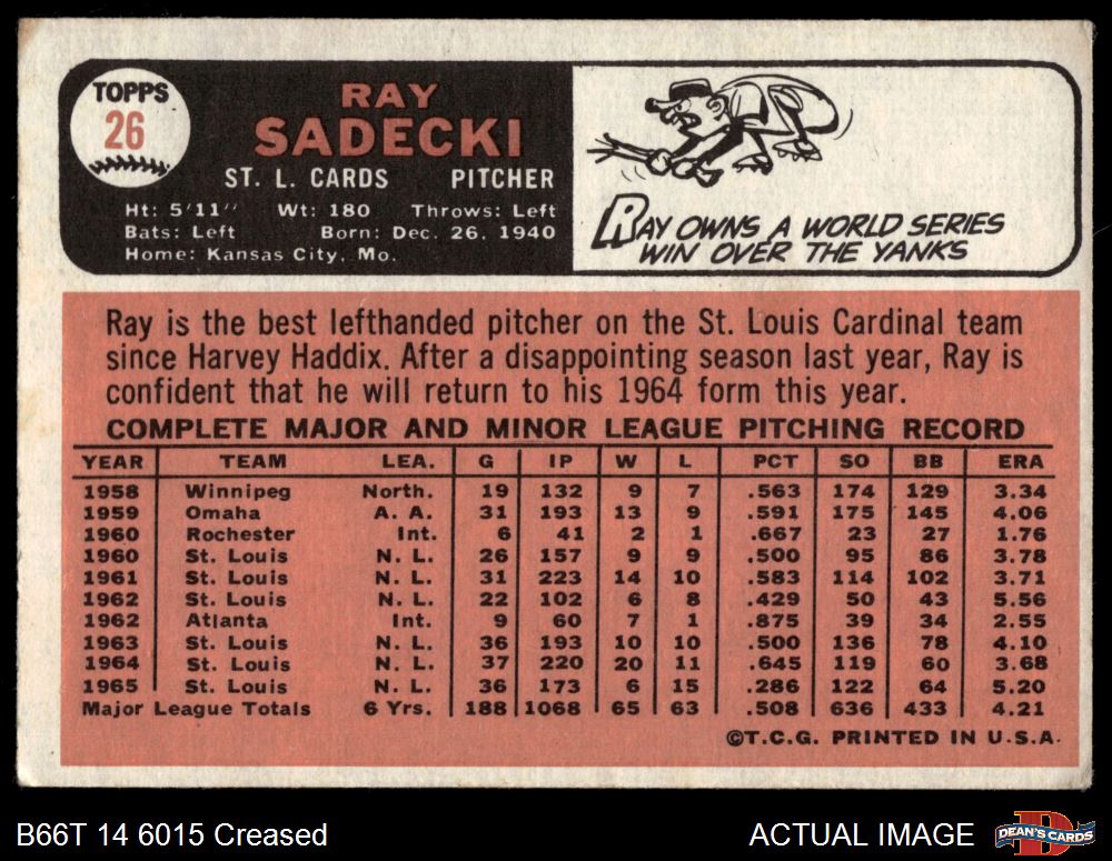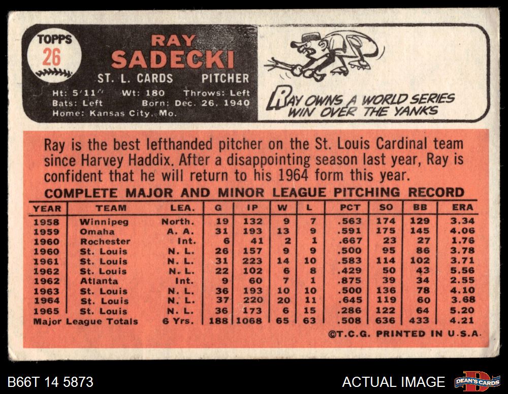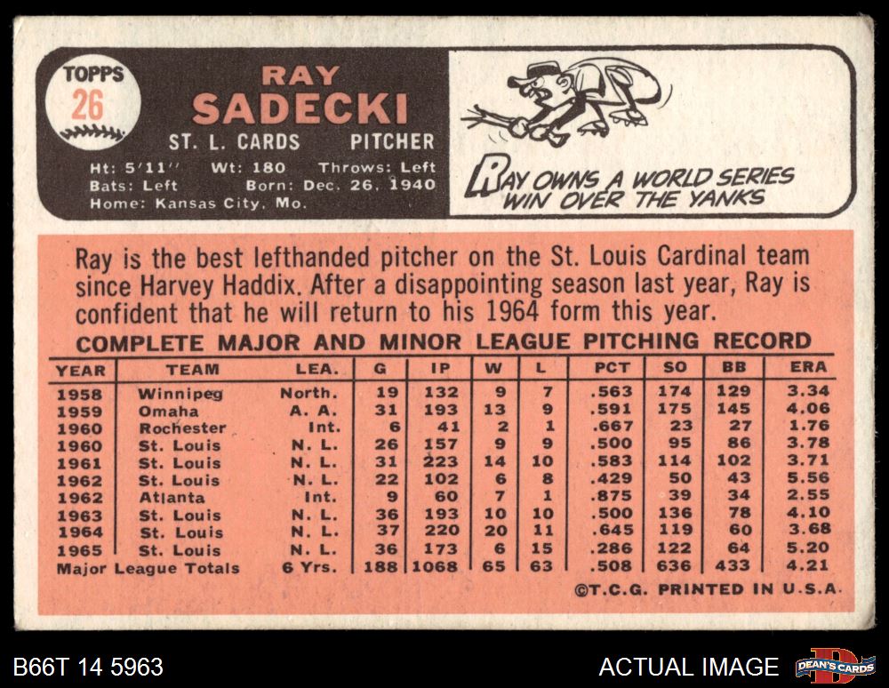 1966 Topps #26 Ray Sadecki 2 - GOOD