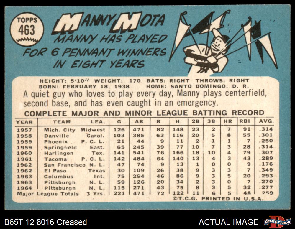 1965 Topps #463 Manny Mota 3 - VG
