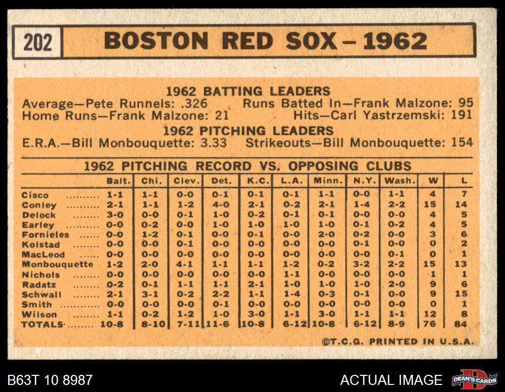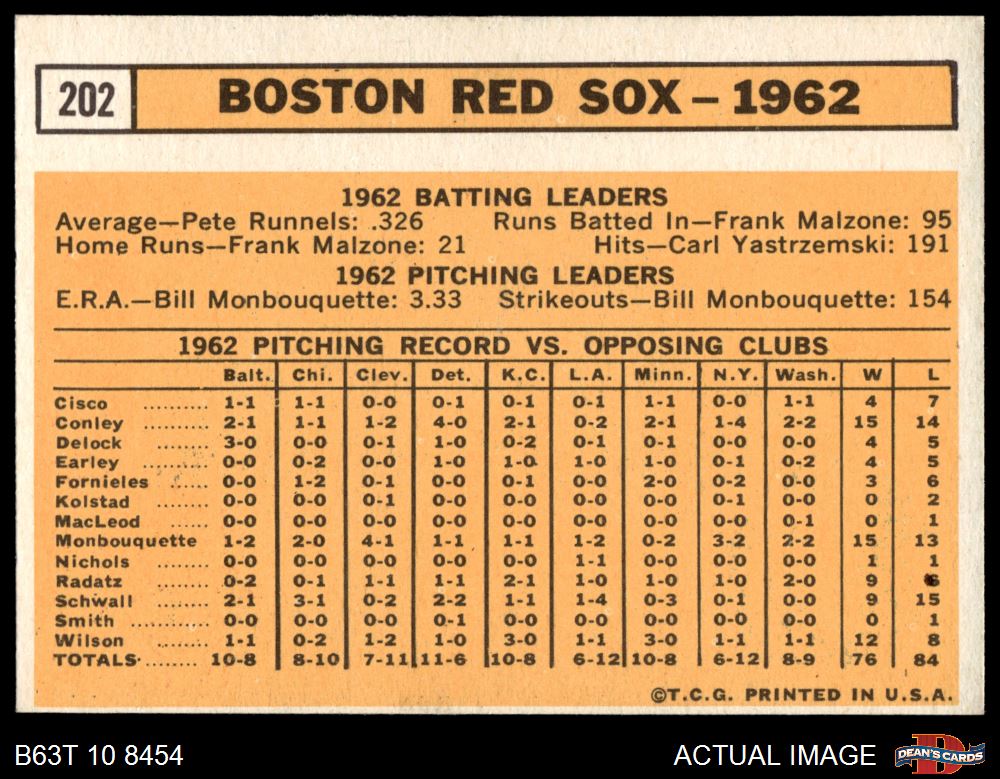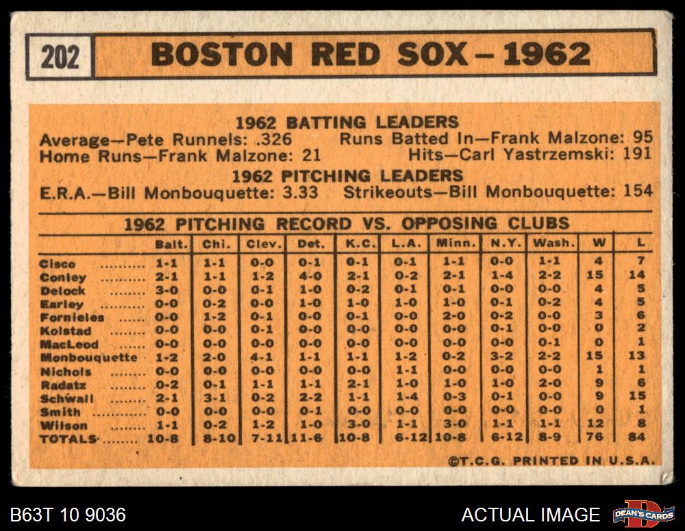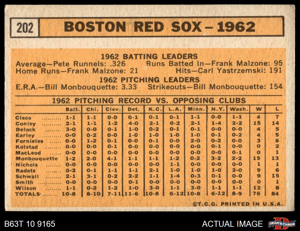 1963 Topps #202 Red Sox Team