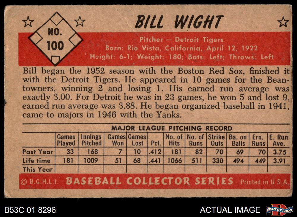1953 Bowman #100 Bill Wight 2 - GOOD