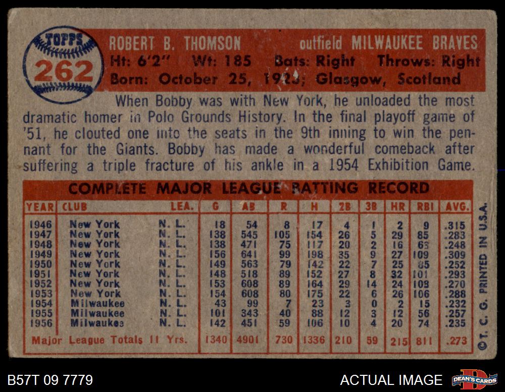 1957 Topps #262 Bobby Thomson 1 - POOR