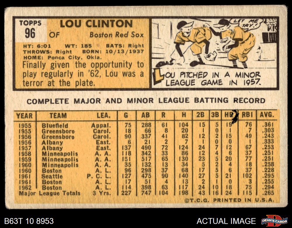 1963 Topps #96 Lou Clinton 1.5 - FAIR