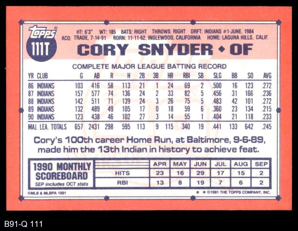 1991 Topps Traded #111 T Cory Snyder 8 - NM/MT