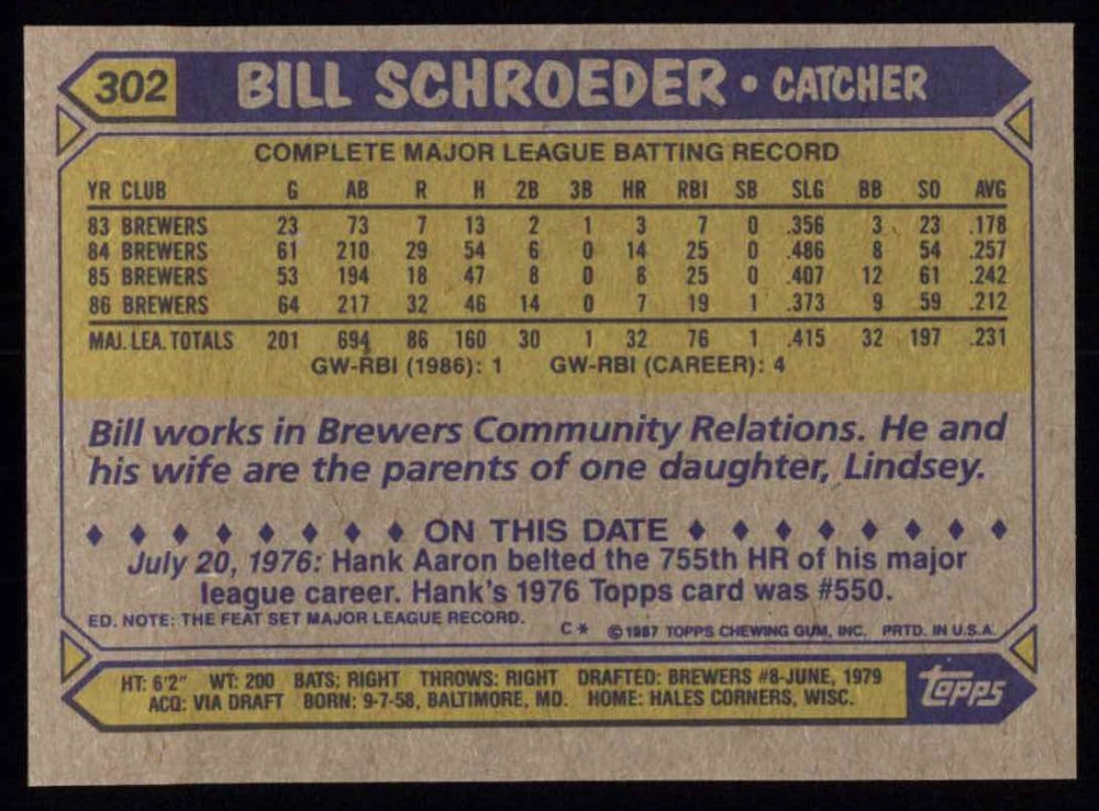 1987 Topps Baseball Cards (5,306 available)1987 Topps Brewers (321 available)