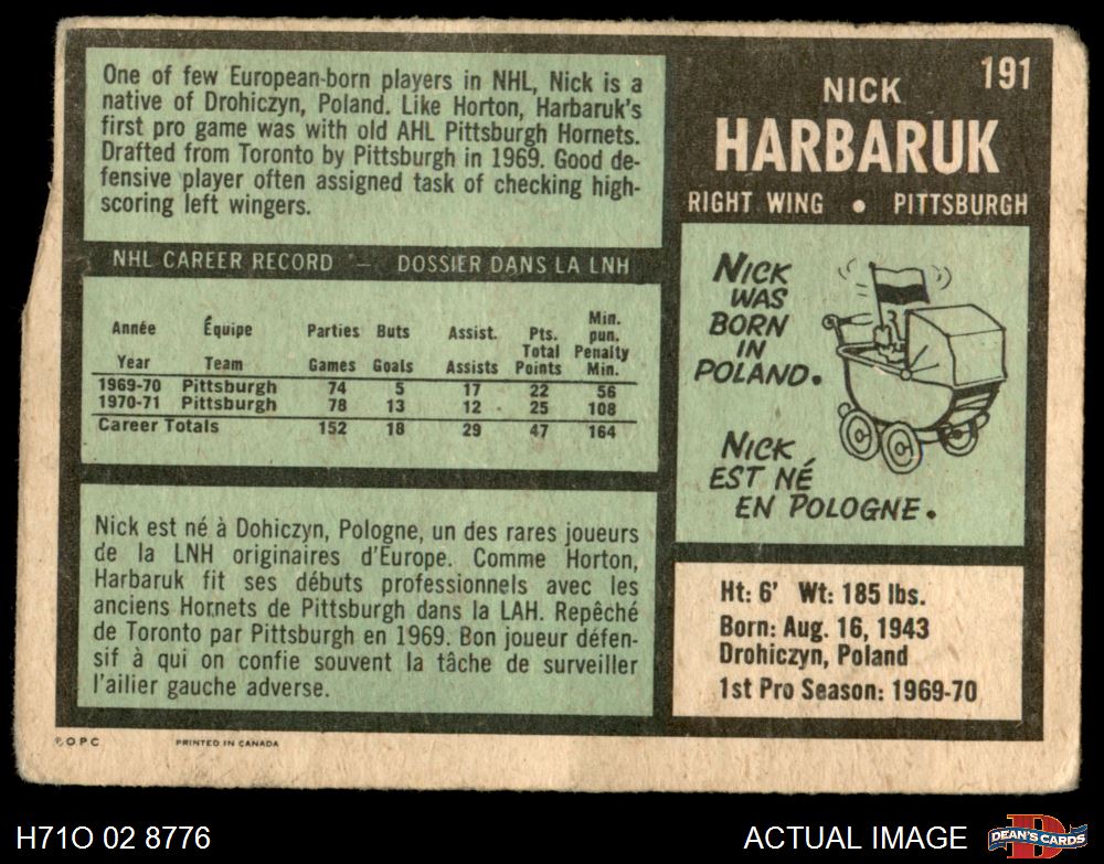 1971 O-Pee-Chee #191 Nick Harbaruk AUTHENTIC