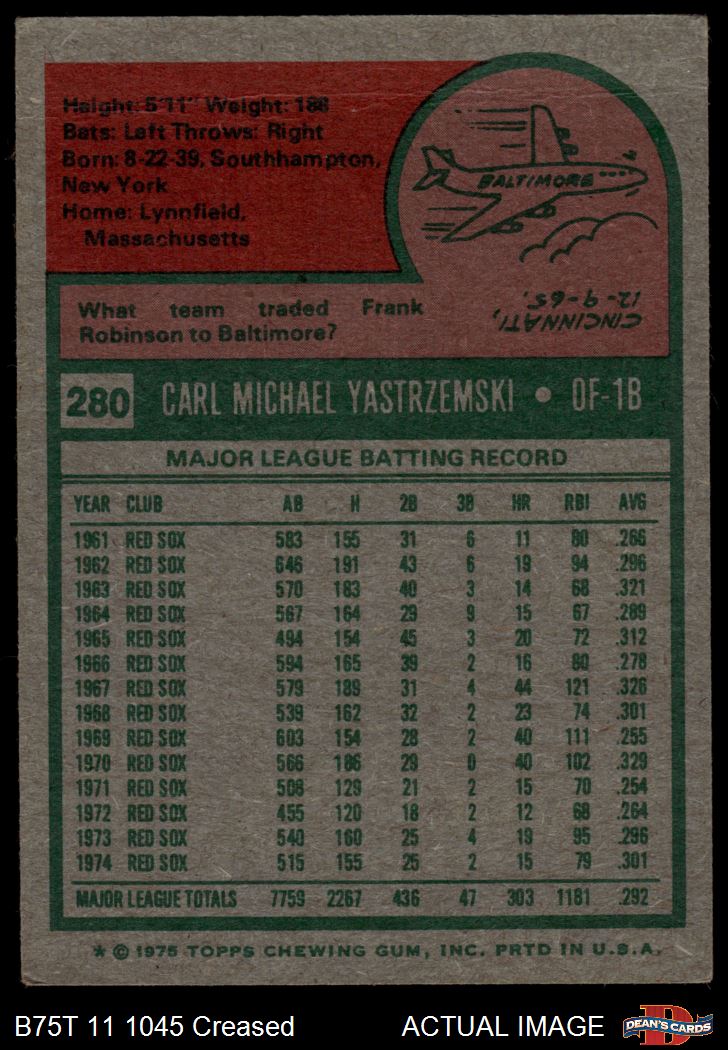 1975 Topps #280 Carl Yastrzemski 2.5 - GD+