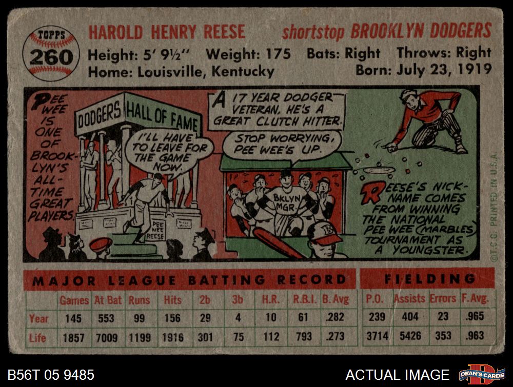 1956 Topps #260 Pee Wee Reese AUTHENTIC
