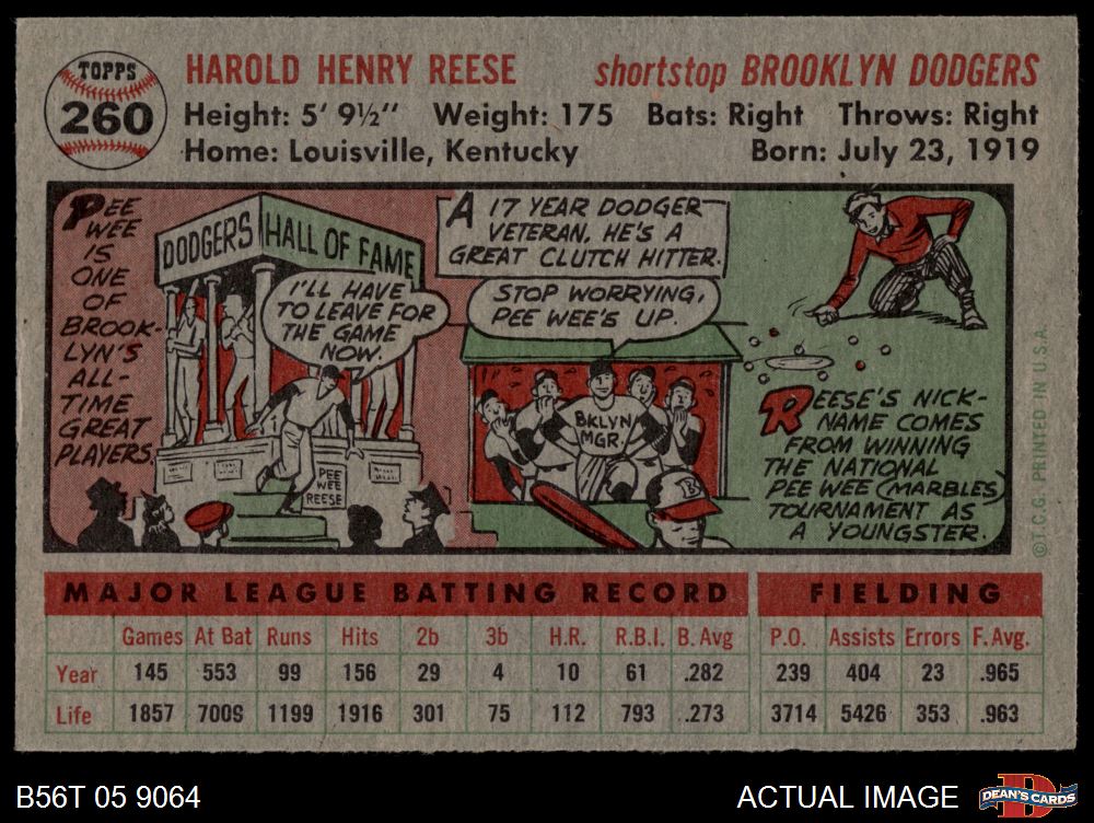 1956 Topps #260 Pee Wee Reese 6 - EX/MT