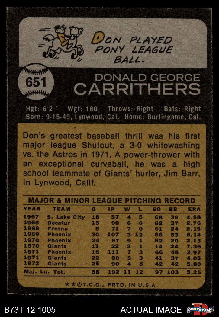 1973 Topps #651 Don Carrithers 4 - VG/EX
