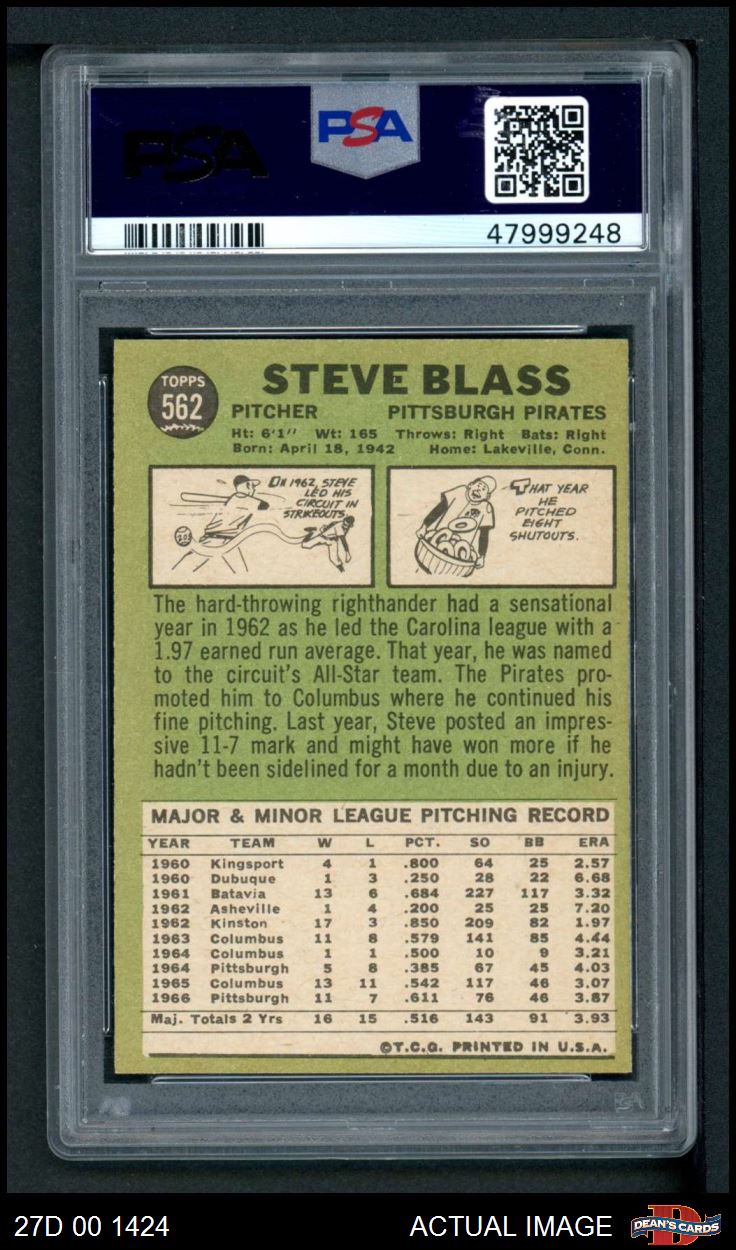 1967 Topps #562 Steve Blass PSA 7 - NM