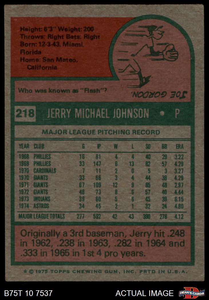 1975 Topps #218 Jerry Johnson 5 - EX