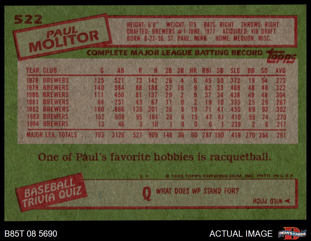1985 Topps Baseball Cards (11,228 available)1985 Topps Brewers (498 available)