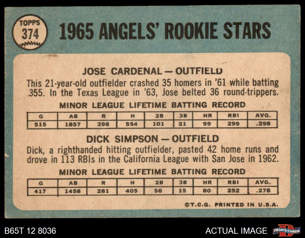 1965 Topps #374 - Jose Cardenal / Dick Simpson Angels Rookies 1 - POOR