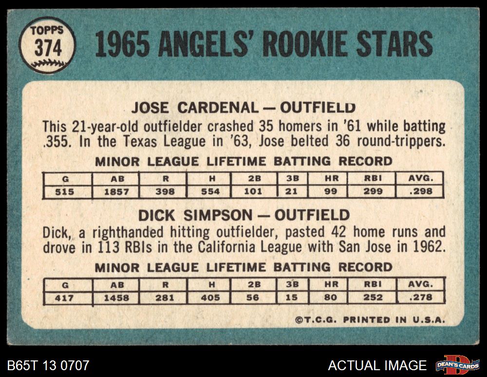 1965 Topps #374 - Jose Cardenal / Dick Simpson Angels Rookies 2.5 - GD+