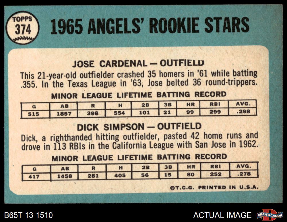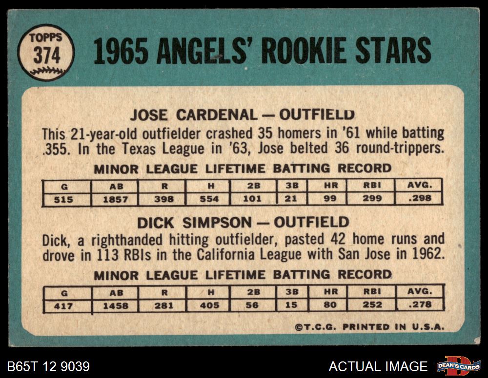 1965 Topps #374 - Jose Cardenal / Dick Simpson Angels Rookies 4 - VG/EX