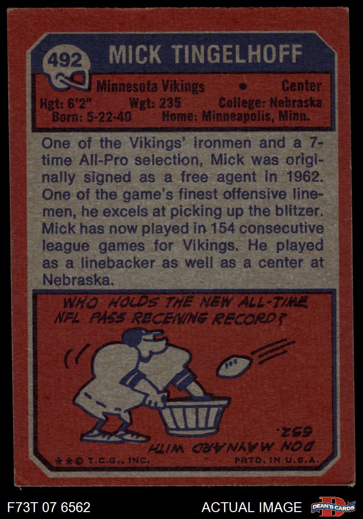 1973 Topps #492 Mick Tingelhoff