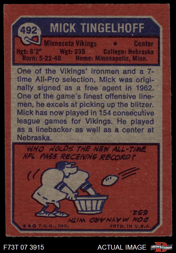 1973 Topps #492 Mick Tingelhoff 3 - VG
