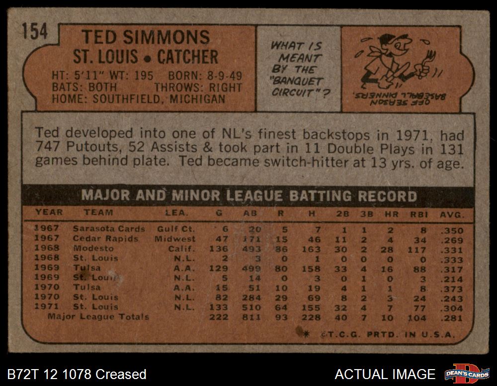 1972 Topps #154 Ted Simmons 1.5 - FAIR