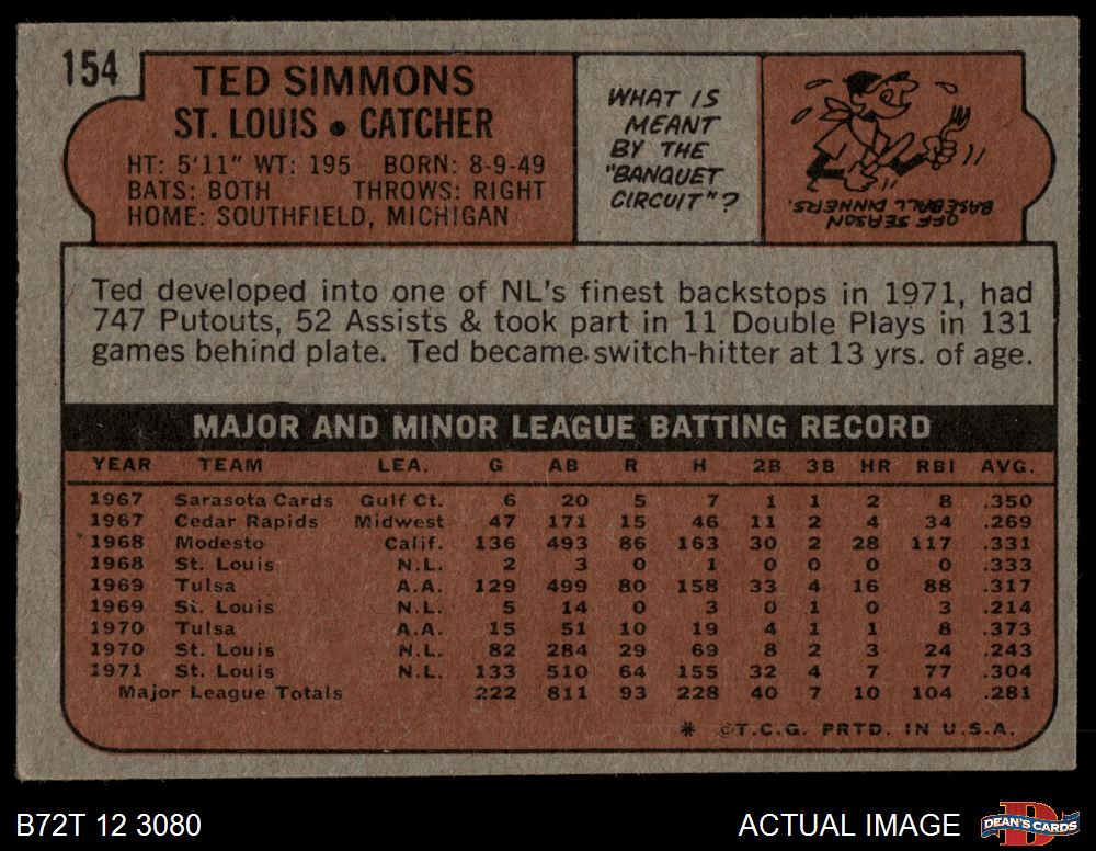 1972 Topps #154 Ted Simmons