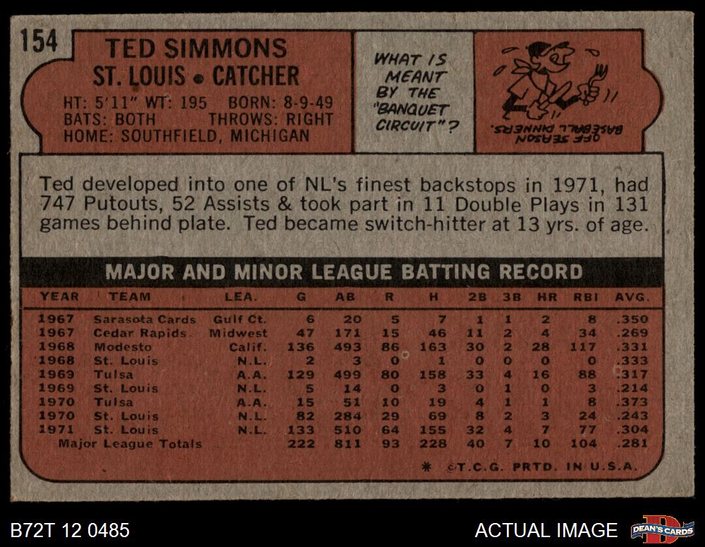 1972 Topps #154 Ted Simmons 2 - GOOD