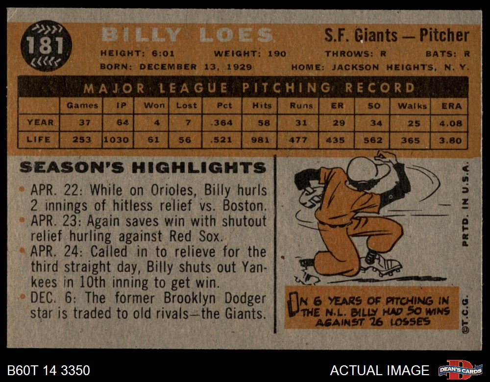 1960 Topps #181 Billy Loes 4.5 - VG/EX+