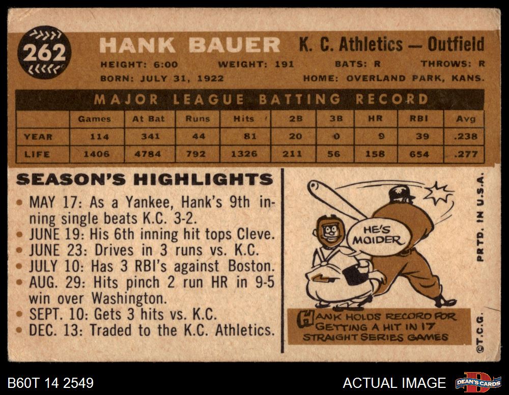 1960 Topps #262 Hank Bauer 2 - GOOD