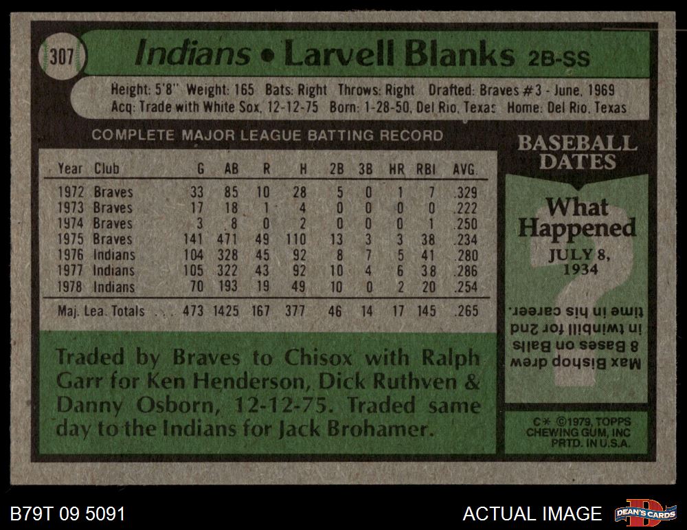 1979 Topps #307 Larvell Blanks 5.5 - EX+