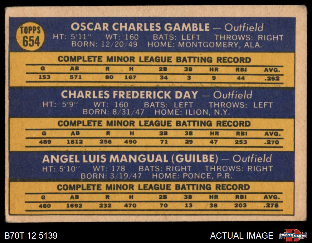 1970 1970 #654 - Oscar Gamble / Boots Day / Angel Mangual NL Rookies 3 - VG