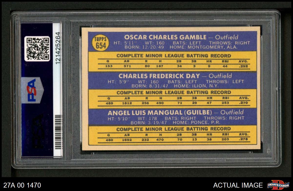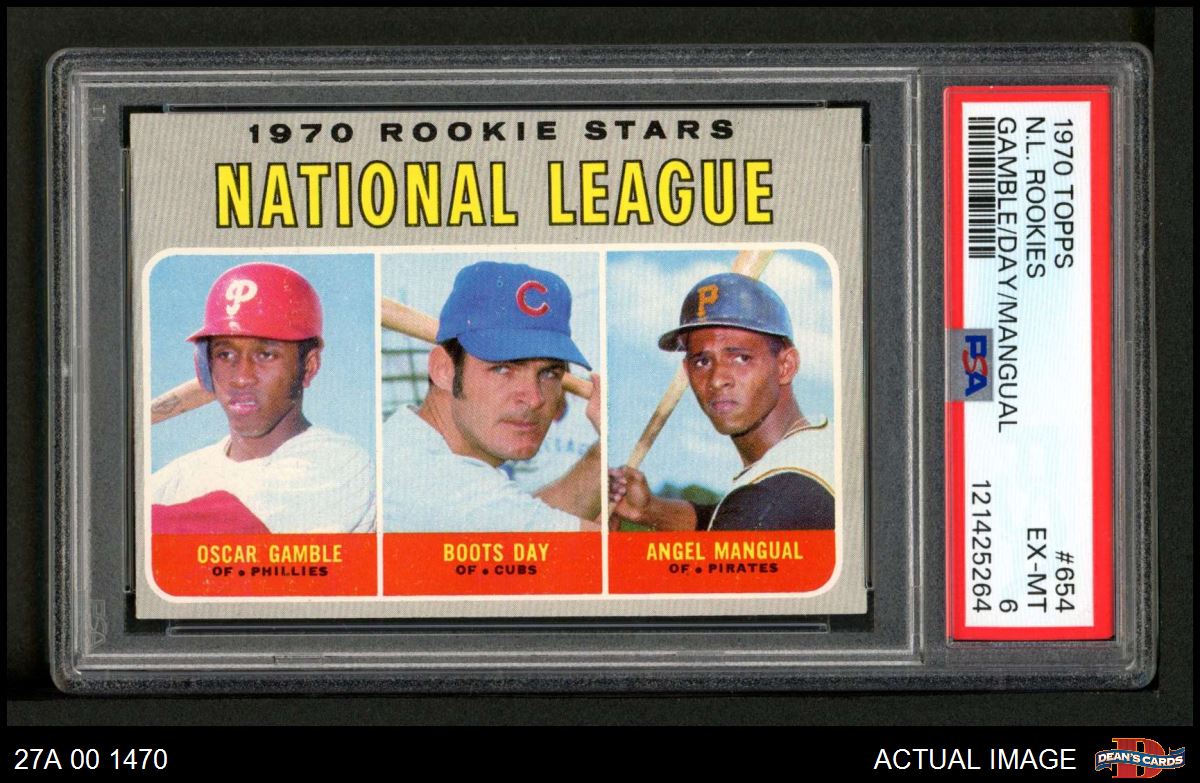 1970 Topps #654 - Oscar Gamble / Boots Day / Angel Mangual NL Rookies PSA 6 - EX/MT