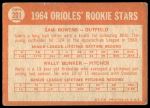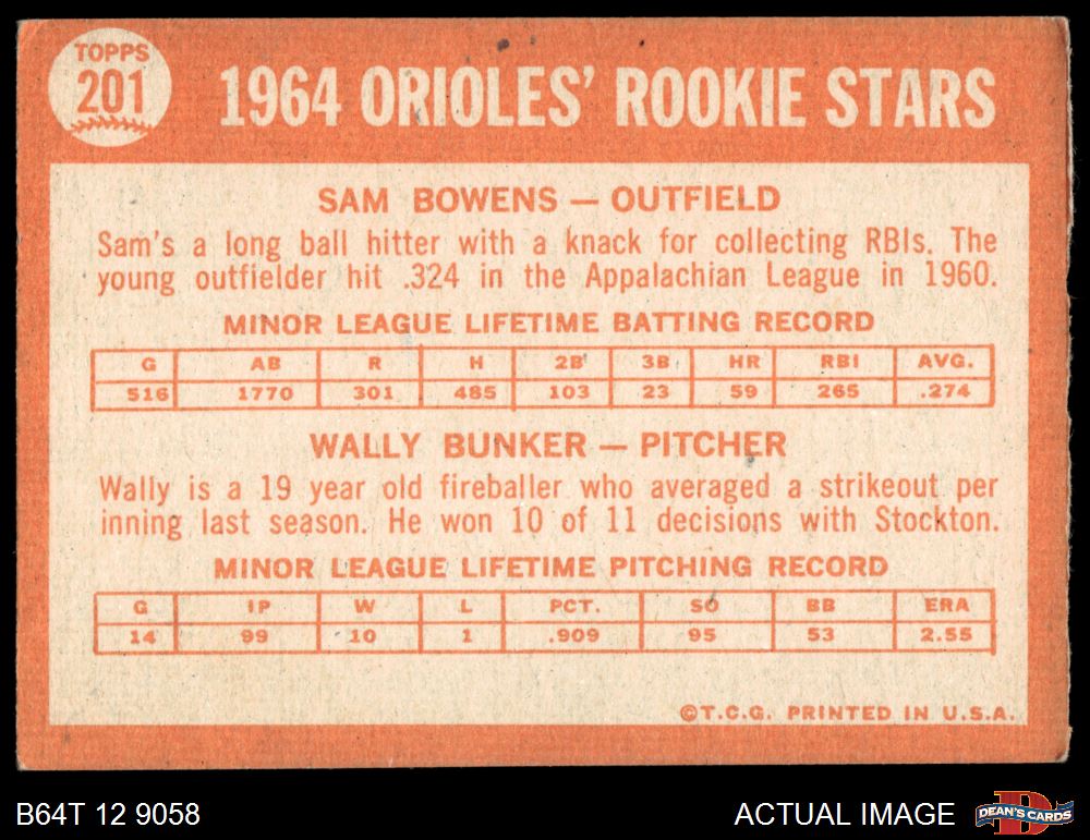 1964 Topps #201  -  Wally Bunker / Sam Bowens Orioles Rookies Front Thumbnail