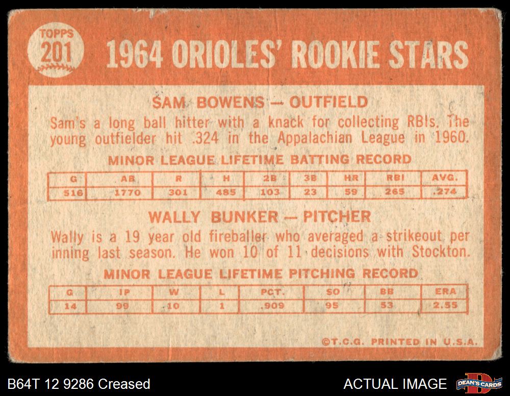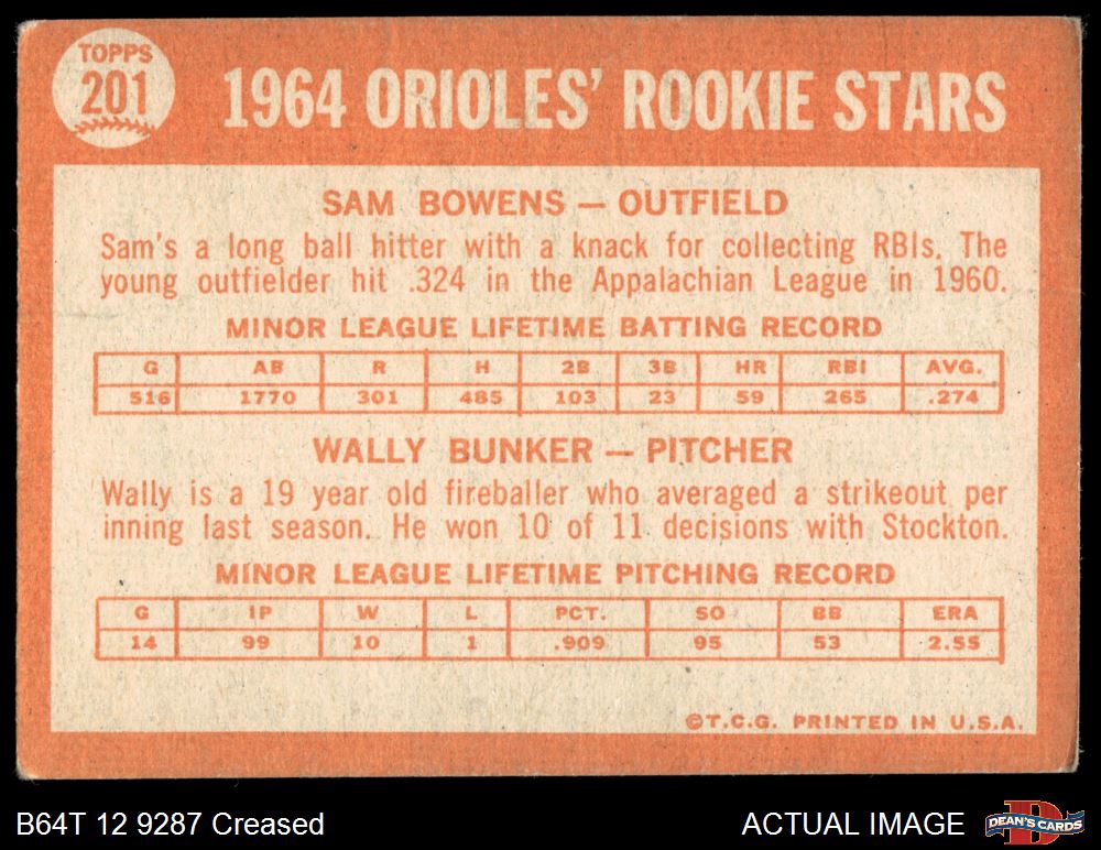 1964 Topps #201 - Wally Bunker / Sam Bowens Orioles Rookies 1.5 - FAIR