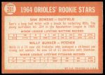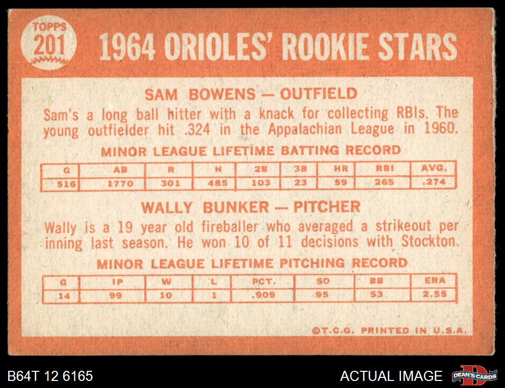 1964 Topps #201 - Wally Bunker / Sam Bowens Orioles Rookies 2 - GOOD