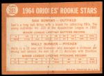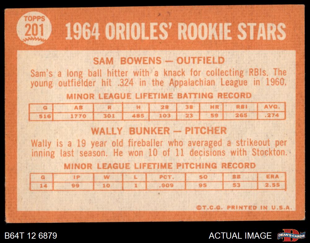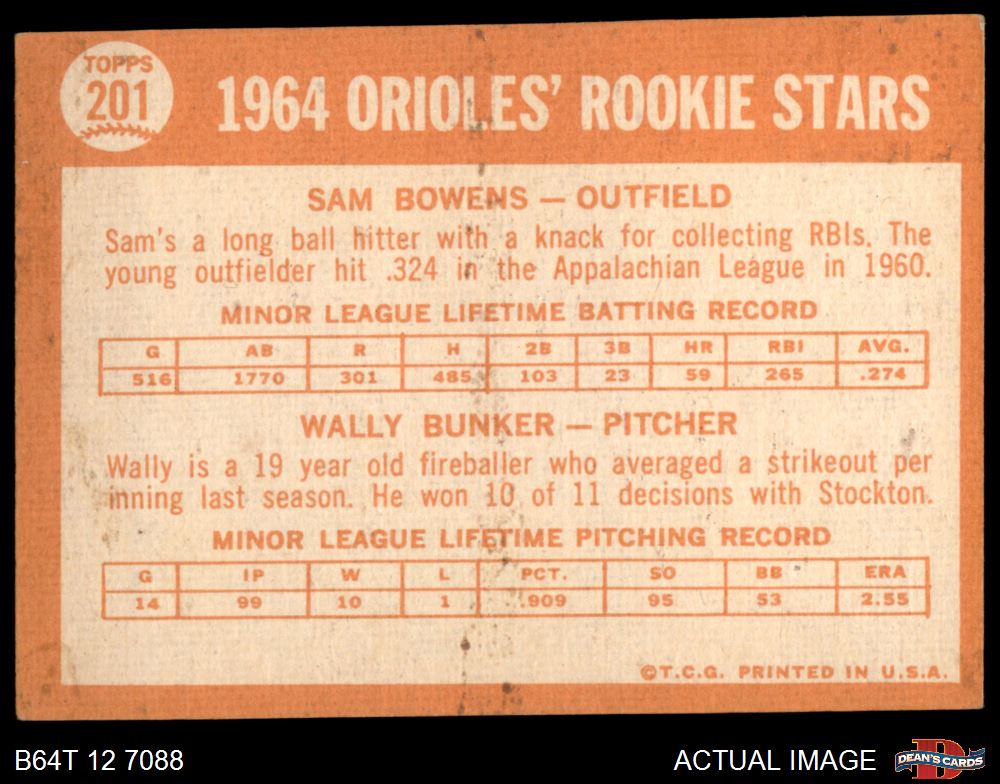 1964 Topps #201 - Wally Bunker / Sam Bowens Orioles Rookies 3 - VG