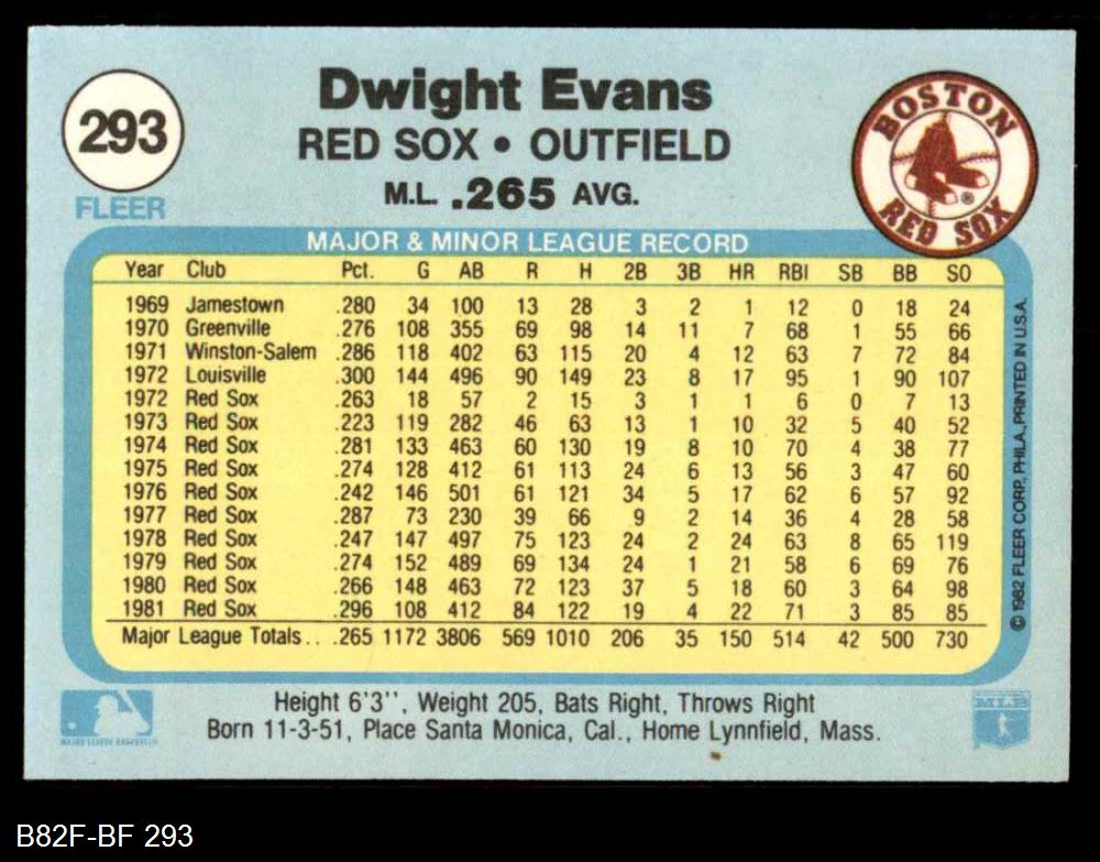 1982 Fleer #293 Dwight Evans 8 - NM/MT