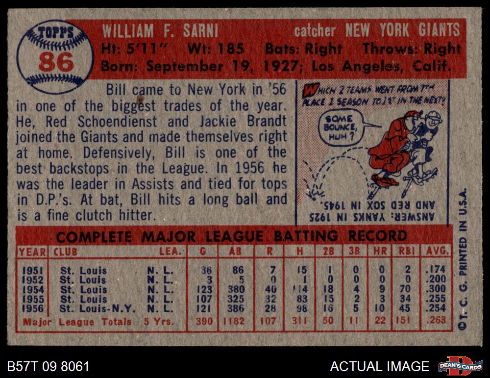 1957 Topps #86 Bill Sarni 5.5 - EX+