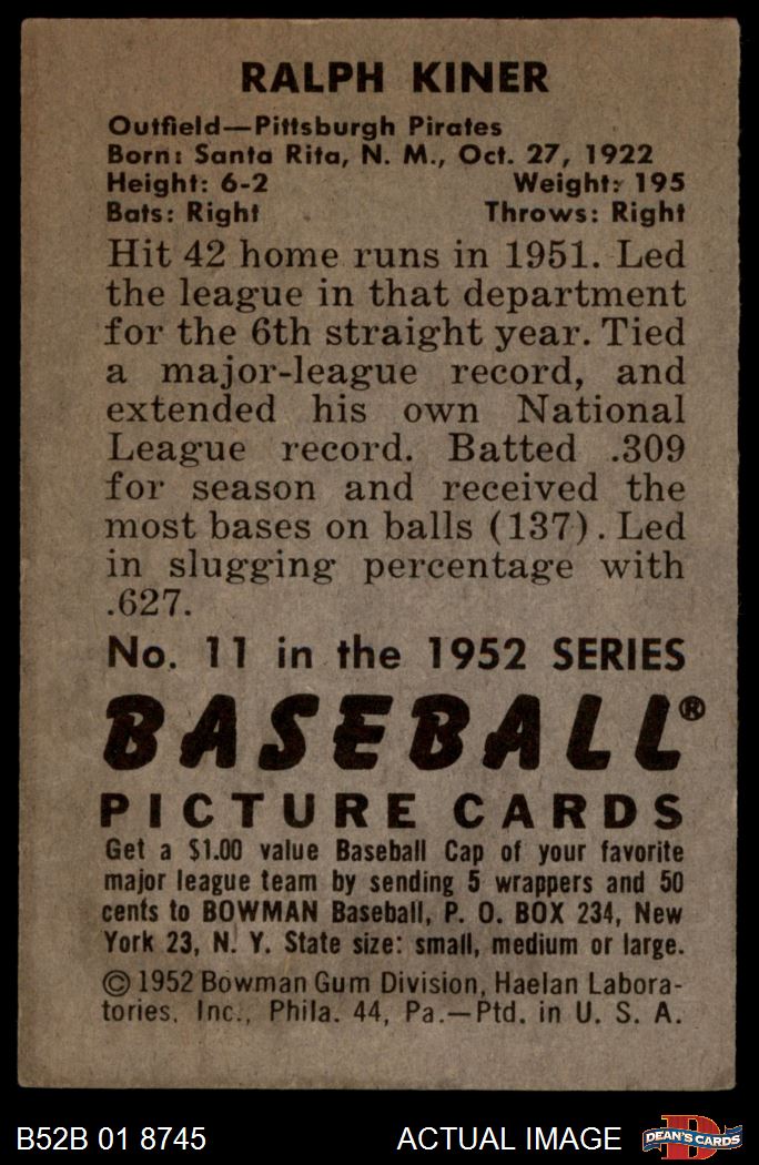 1952 Bowman #11 Ralph Kiner 1 - POOR