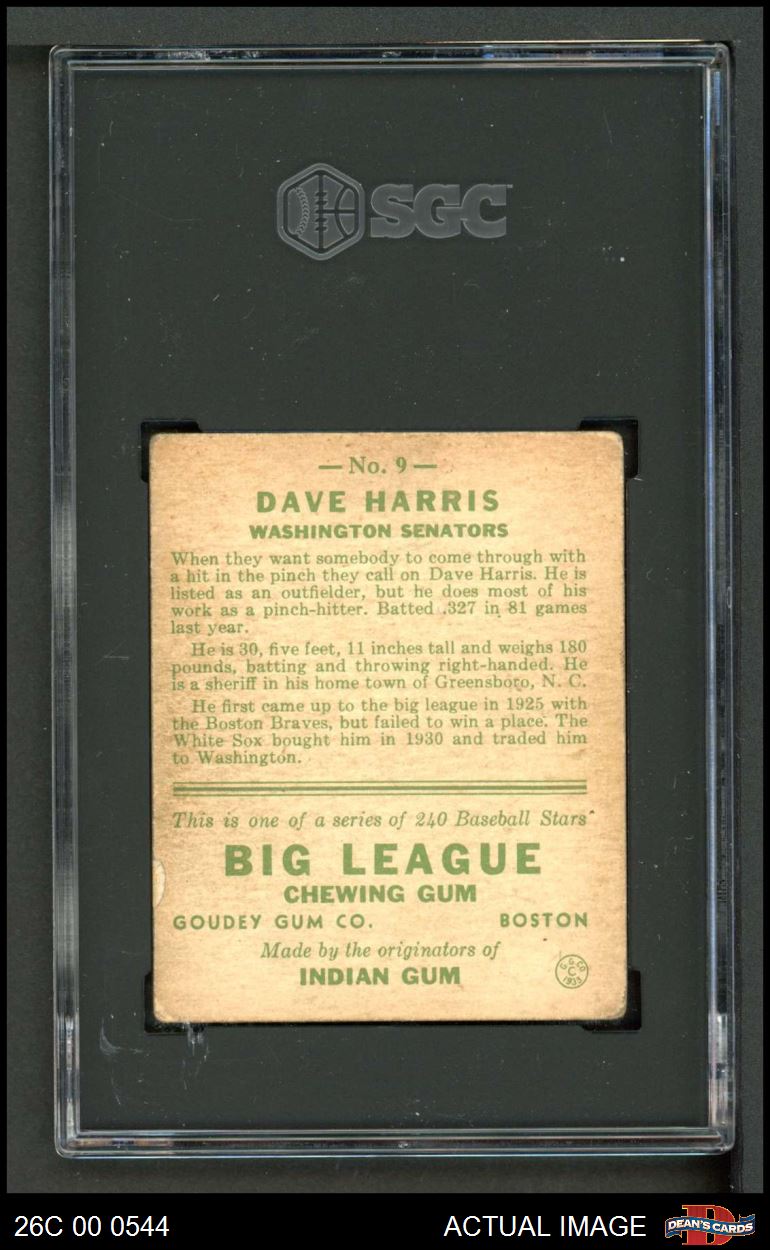1933 Goudey #9 Dave Harris SGC 2 - GOOD
