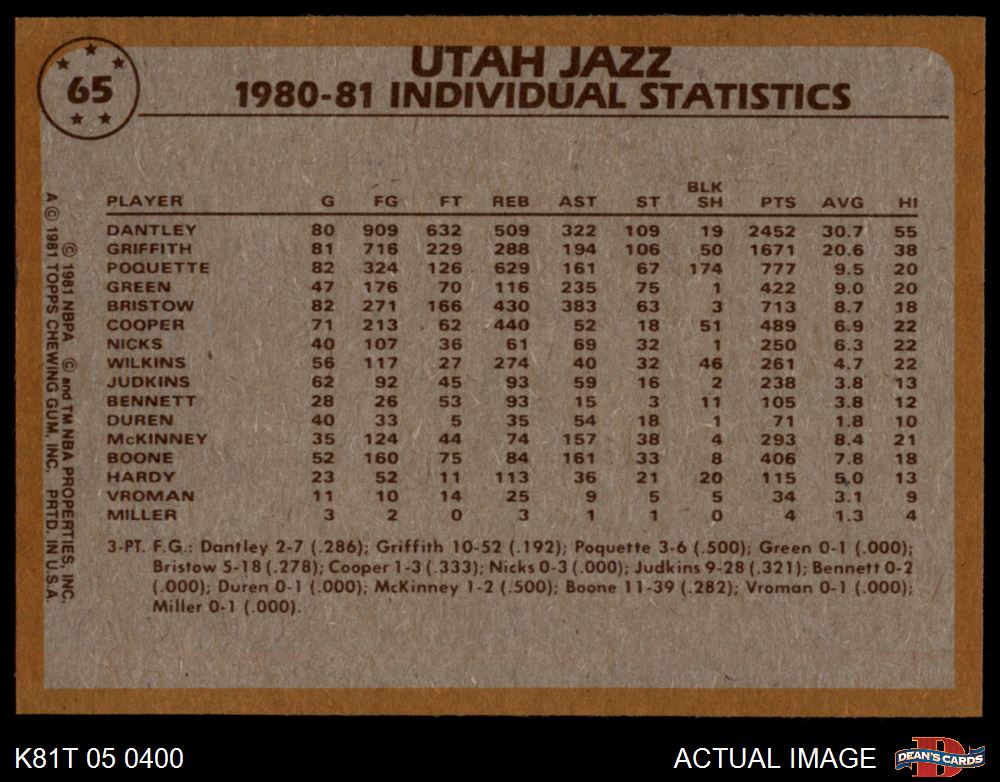 1981 Topps #65 - Adrian Dantley / Ben Poquette / Allan Bristow Jazz Leaders 7 - NM