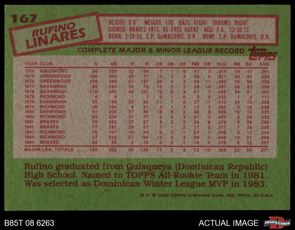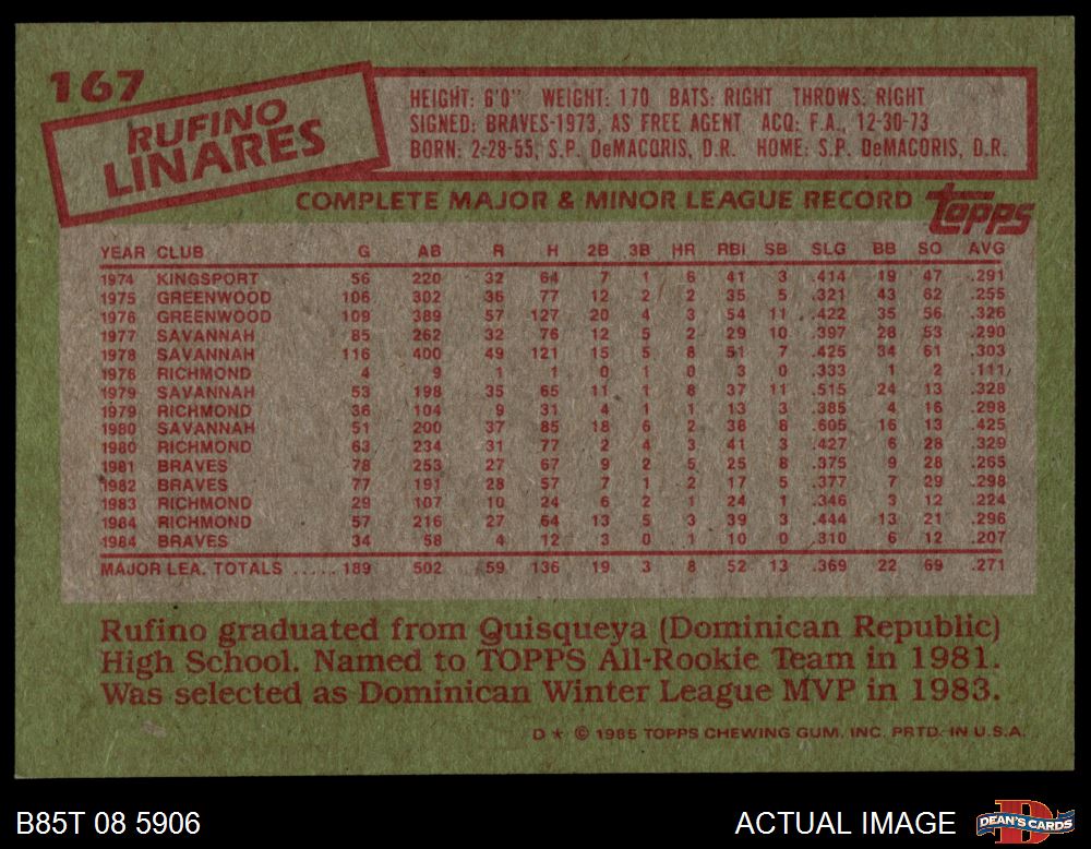 1985 Topps #167 Rufino Linares 8 - NM/MT