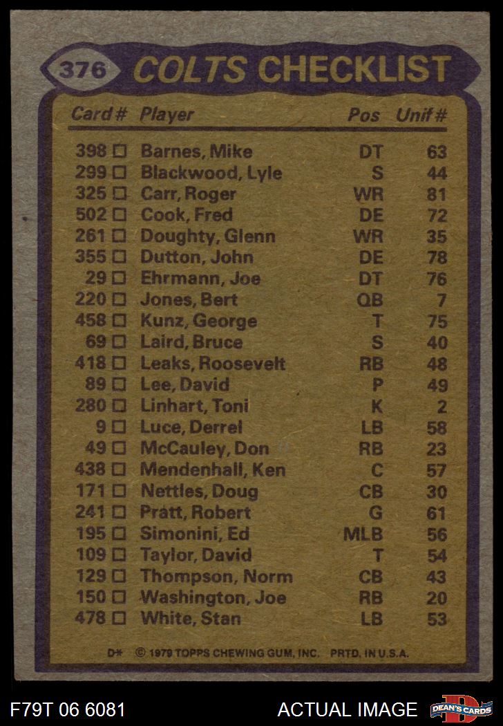 1979 Topps #376 - Joe Washington / Roger Carr / Norm Thompson / John Dutton Colts Team Leaders & Checklist 3 - VG