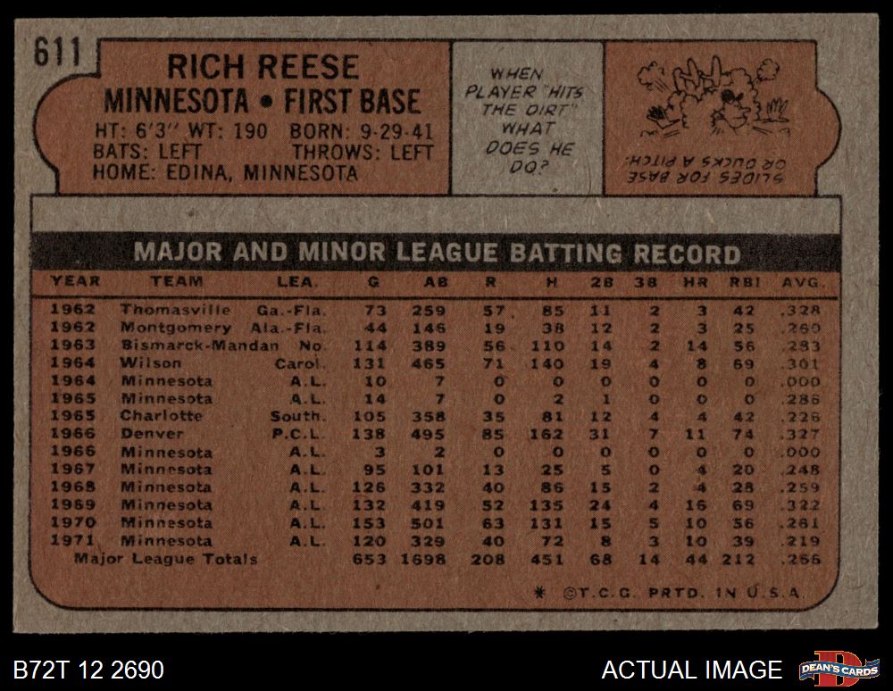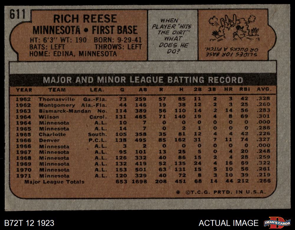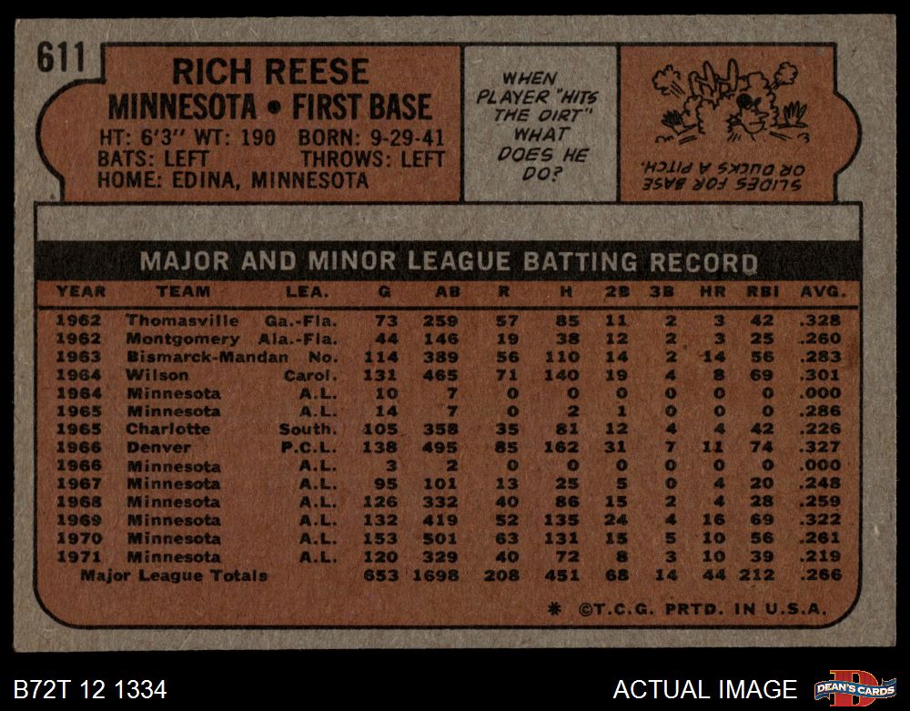 1972 Topps #611 Rich Reese